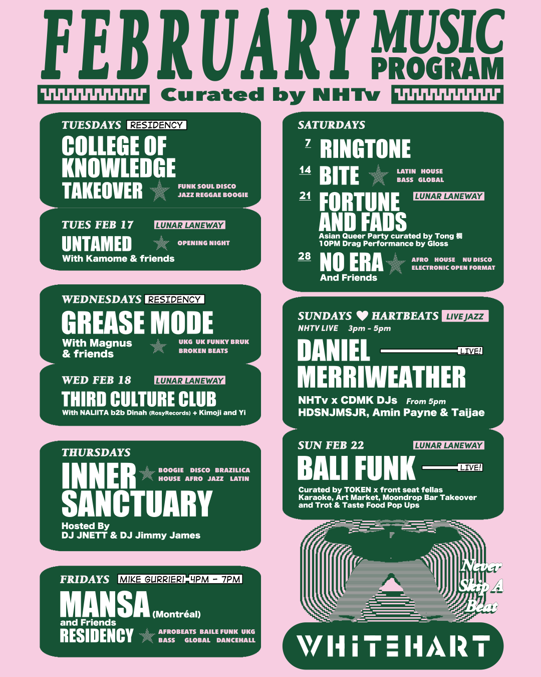 The perfect end to your weekend, only at Whitehart. Featuring Daniel Merriweather and NHTV Trio ft Amin Payne x HDSNJMSJR x GUEST PRODUCER