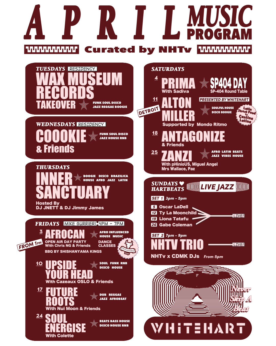 The creeping dread of Monday is a savage beast, but we’ve built a sanctuary in the concrete guts of Whitehart Lane. Welcome to HARTBEATS. Every Sunday this April, we’re drowning out the madness of the outside world with an unrelenting tidal wave of live jazz.